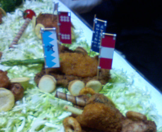 とんかつとコロッケなどを組み合わせて戦車にしました。